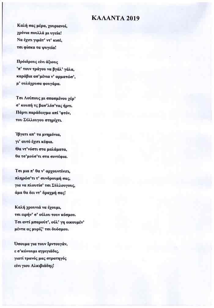 Τα κάλαντα έγραψε ο κ. Τραγάκης Μανώλης,γραμματέας του συλλόγου