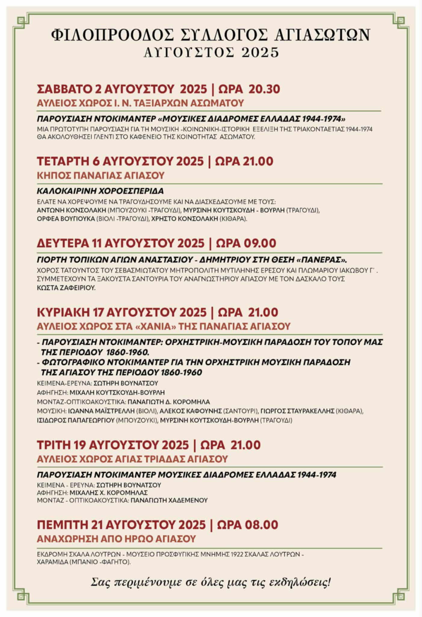 ΕΚΔΗΛΩΣΕΙΣ ΚΑΛΟΚΑΙΡΙΟΥ ΣΤΗΝ ΑΓΙΑΣΟ