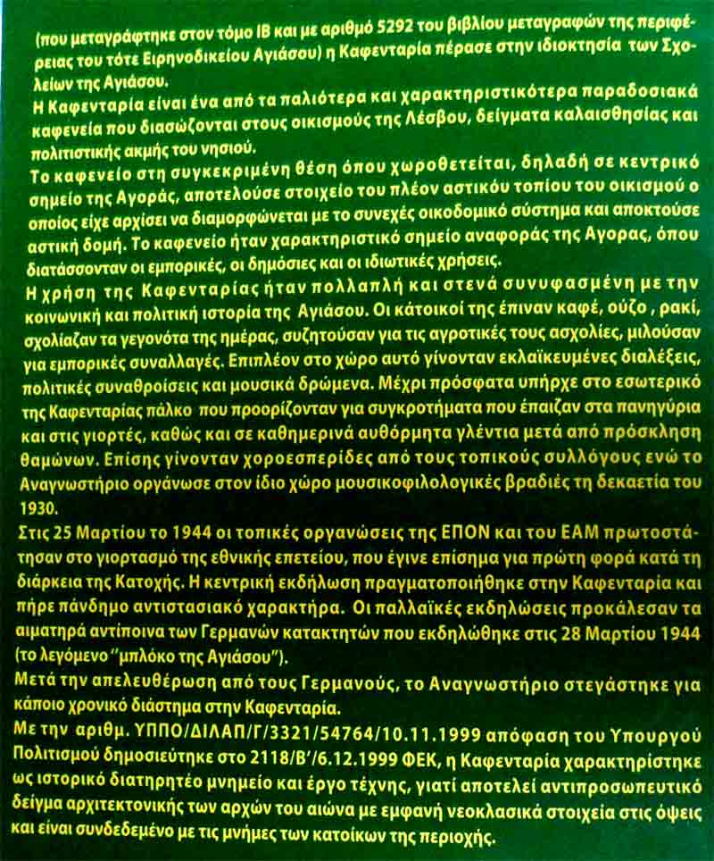 Το ιστορικό καφενείο "ΚΑΦΕΝΤΑΡΙΑ" ,που ευρίσκεται στο κέντρο της πλατείας της Αγιάσου