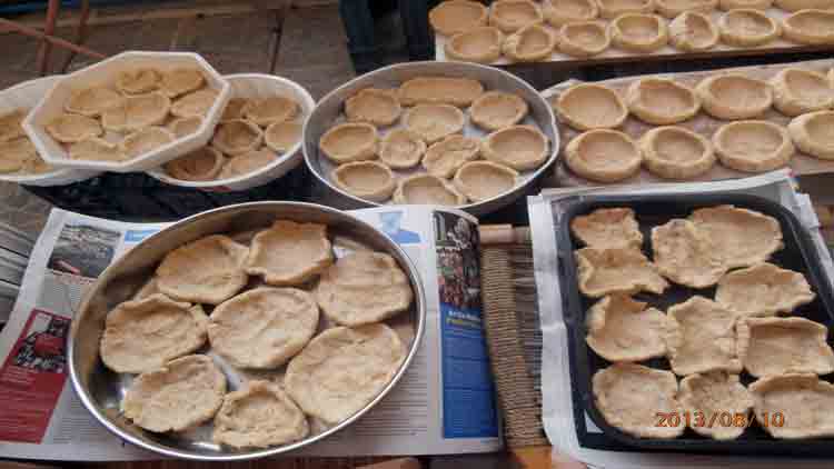 στο ιδιότυπο σχήμα της μικρής κούπας "χάχλα", παξιμάδια ντόπια, νόστιμα κρέατα και πολύ καλά