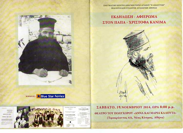 Εκδήλωση - Αφιέρωμα στον Παπά-Χριστόφα Κανιμά στο θέατρο του πολυχώρου